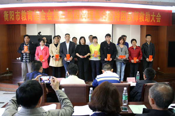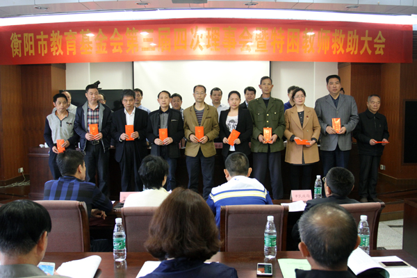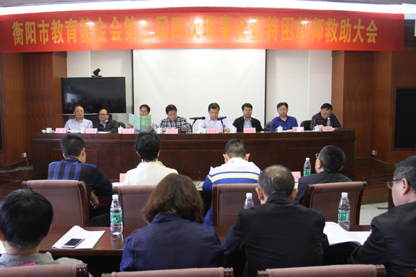 4月25日上午,衡阳市教育基金会第三届四次理事会暨表彰大会隆重召开。会议总结了我市教育基金会2016年的工作,研究部署了2017年的工作任务,并现场为20名特困教师每人发放5000元救助金。市政府副市长龚学余出席大会并作讲话。市教育局党委书记、局长程少平宣读2017年衡阳市教育基金会第一批特困教师救助名单。市政府副秘书长刘定安、市政协教科文卫体委主任左琼颖、市教育基金会副理事长严洪涛出席会议,市教育基金会理事长雷良玉主持会议,市教育基金会副理事长兼秘书长刘宇作工作报告,市教育基金会全体理事、监事、各县市区教育局分管教育基金会工作的领导、人事股长、基金会专职干部,市直学校校长,民办学校部分负责人参加会议。