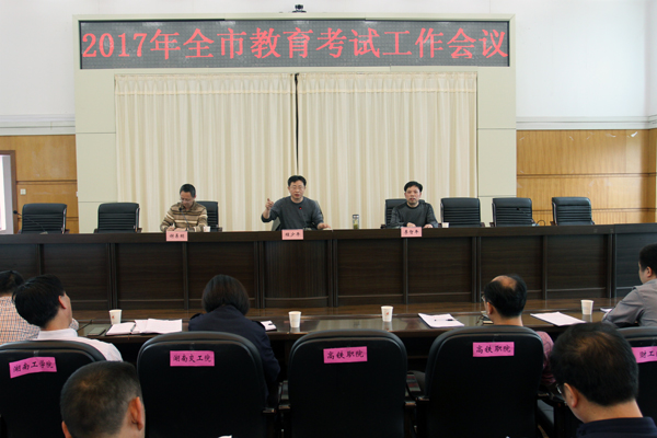 4月24日,2017年全市教育考试工作会议在市教育局八楼会议室召开,会议传达贯彻了2017年全省教育考试工作会议精神,总结了2016年全市教育考试工作,研究部署了2017年教育考试工作,并通报表彰了全市2016年度教育考试工作先进单位及单项先进单位,国家教育统一考试优秀考点及教育考试工作先进个人。各县市区和市直考点向市教育局递交了组考工作责任状。市教育局党委书记、局长程少平出席会议并讲话。市教育局党委委员、市教育考试院院长李智平作全市教育考试工作报告。各县市区教育局局长、分管教育考试工作副局长、招考机构主要负责人;市直国考考点学校校长及考务专干;市直学校报名点负责人;本科院校继教院院长、高职院校继教部门分管领导和负责人一同参会。