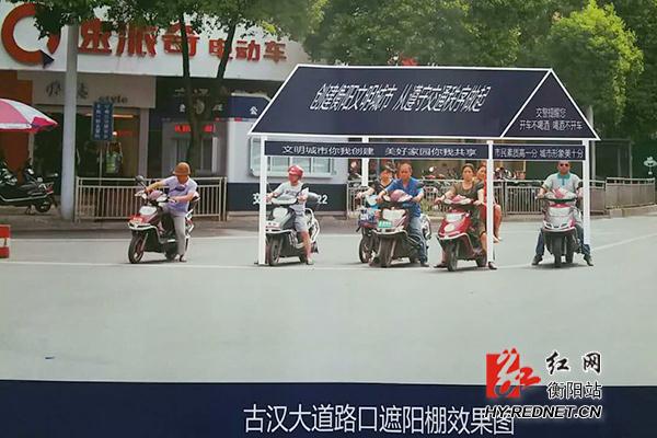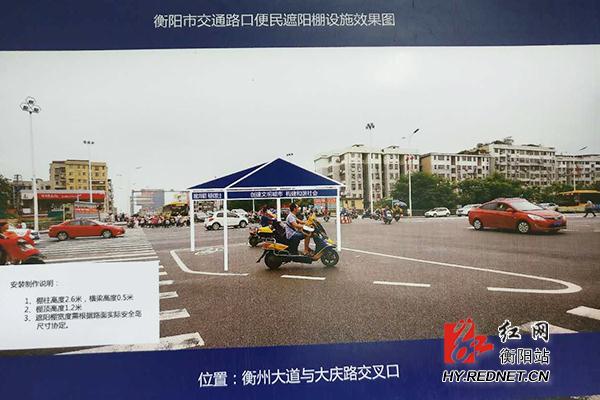 市交警支队负责人介绍,衡阳市城区电动车已经超过13.5万辆,还有近期引进的大量共享单车,可以说非机动车是市民出行的主要交通工具。安装遮阳棚,除了为市民提供遮阳挡雨的作用外,还能避免市民为避免烈日炙烤而加速冲闯红灯的现象,进而避免交通违法行为的产生。6月初,交警支队在解放大道与长丰大道十字路口、船山路与蒸湘北路十字路口搭建了8个遮阳棚,从反馈效果来看,市民非常支持这种便民措施,交通事故也有所缓解。