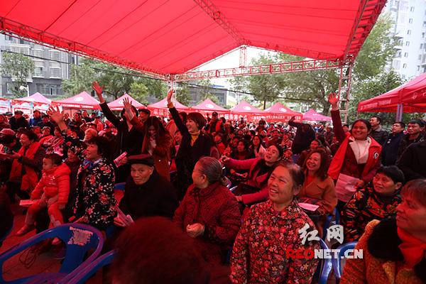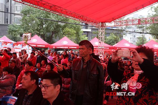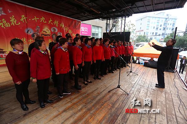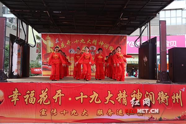 红网时刻11月24日讯(衡阳分站记者 蒋楠)11月24日,由衡阳市委宣传部主办的“幸福花开·十九大精神润衡州”系列活动走进衡阳市雁峰区黄茶岭街道幸福社区,以知识抢答、文艺汇演、理论咨询、便民服务等接地气的形式,大力宣传贯彻党的十九大精神。不同于以往演出的是,本场演出中由居民自发编排的三个节目一一登场。