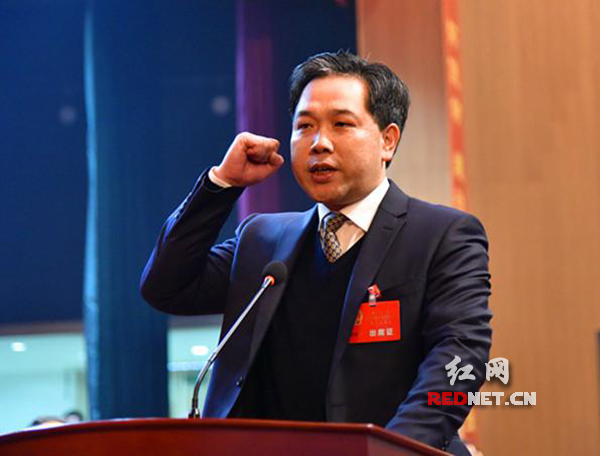 新当选的衡东县监察委员会主任刘卫平向宪法宣誓。