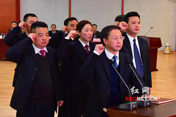 新任命的衡东县监察委员会副主任、委员面对宪法庄严宣誓。