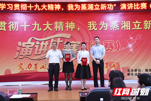 红网时刻衡阳5月15日讯(记者 谭倩 通讯员 陆意)5月15日下午,衡阳市蒸湘区总工会举行“学习贯彻十九大精神,我为蒸湘立新功”演讲比赛总决赛。经过紧张激烈角逐,最终评选出一等奖2名,二等奖4名,三等奖6名以及优秀组织奖若干。