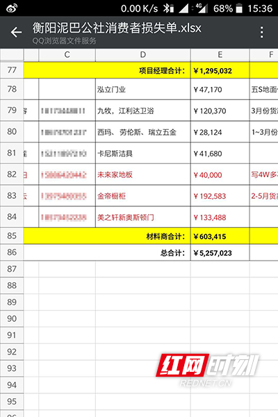 目前,泥巴公社的部分业主、材料供应商、项目经理组成维权群,在这个160余人的群里,相当部分业主交了35%的装修款,但是还没有动工,材料供应商、项目经理都没有拿到货款,施工方没有拿到工钱,据初步统计各方损失共约500余万元。