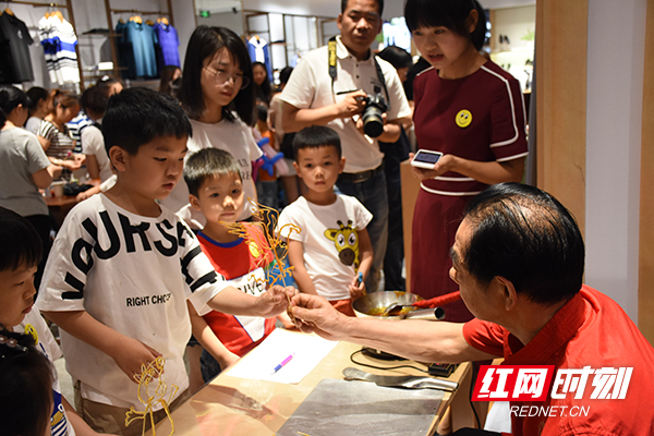 红网时刻衡阳5月27日讯(记者 宋美君)“这个泥人真漂亮,我也要学。”8岁的小颖见到刚捏好的逼真小泥人,兴奋不已。5月27日,在圣得西轻生活系列沙龙“只为遇见“泥”——圣得西亲子家庭日”活动现场,非物质文化遗产——泥人面塑传承人孙华斌和糖画传承人杨天正与家长们、小朋友们一同体验民间传统文化,重回记忆里的温暖旧时光。