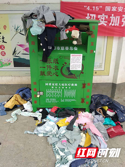 写着“捐衣助人、互助互济”的绿色旧衣回收箱,则是省传递爱心物资回收中心2016年在衡开展的慈善公益项目。对于回收箱所存在的问题,市慈善总会相关工作人员表示,将及时反馈给相关的工作人员,督促其立即整改到位。