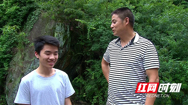 被救者罗瑜亮(罗宏的大儿子)正在向施救者陈运启表达感谢。(廖晶/摄)