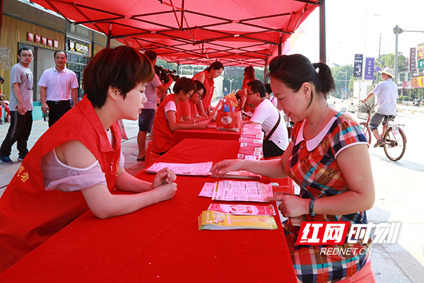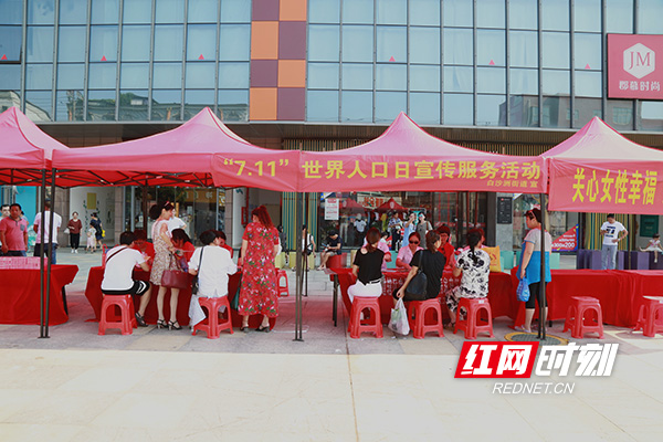 衡阳市雁峰区白沙洲街道开展的“世界人口日”宣传服务活动现场。
