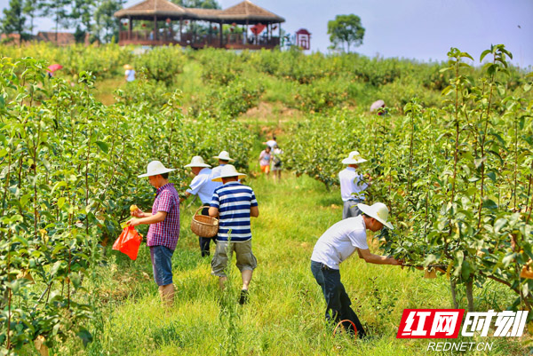 现如今,茶山坳镇堰头村金甲梨园盛产的“金甲脆梨”具有的早熟丰产、果大核小、汁多肉嫩、甜脆可口的特点,深受省内外消费者欢迎。每年丰收季节,该基地车水马龙,外地客商纷至沓来,许多城里人也纷纷走出家门,来到青山碧水间采摘体验,相比于水果摊上的挑捡,梨园里摘水果更令人兴奋,置身于挂满水果的林中,有一种满满的幸福。早熟梨已逐渐成了茶山坳镇的一个新型主导产业,成为该镇农民增收的“山上绿色银行”。