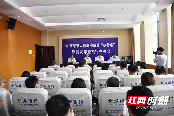 7月12日上午,常宁市人民法院召开“决胜执行难”新闻发布会暨执行兑现大会。