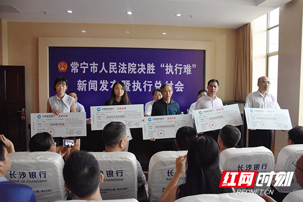 7月12日上午,常宁市人民法院召开“决胜执行难”新闻发布会暨执行兑现大会,通报了法院决胜“执行难”工作情况和3起典型执行案例,并现场为10名申请执行人发放执行款3818.56万元。