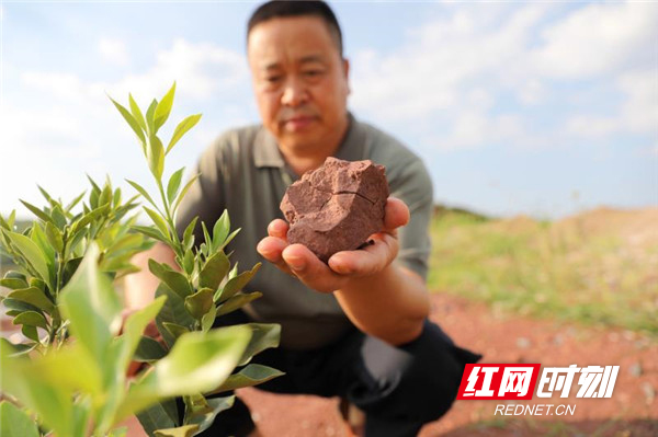 红网时刻衡阳7月20日讯(通讯员 王美 阳超 杨浩 记者 周海波)衡阳是湖南省紫色页岩集中地,面积达130多万亩。紫色页岩山地植被稀少,水土流失严重,被誉为“红色沙漠”。衡阳县返乡农民汪士友经过不懈努力,克服了土壤、种植、灌溉等难题,在紫色页岩试种植柑橘获成功后,今年在当地流转450余亩荒山,种植柑橘2万多株,使得昔日荒山成了柑橘园。