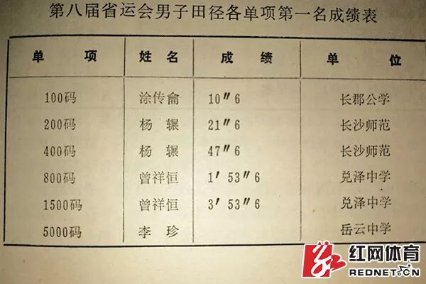 这是刊登在《湖南省志·体育志》上的一张田径比赛成绩单,比赛的时间是90多年前。我们特意对翻拍照片做了处理。