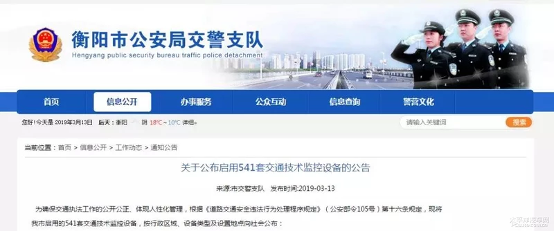 红网时刻衡阳3月14日讯(记者 宋美君)3月14日,记者从衡阳市公安局交警支队获悉,为进一步确保衡阳城区道路交通安全畅通,有效预防和减少交通事故的发生,为广大人民群众营造一个有序、安全、畅通、和谐的道路交通环境,衡阳市交警支队启用541套交通技术监控设备,并在官网进行发布。交警提醒广大市民,文明驾驶,有序通行,以免造成交通违法。