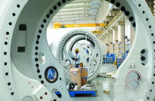 ▲在湘潭智能装备制造产业中,以湘电风能为龙头的风电产业集群在国内极具竞争优势,图为湘电风能总装车间。