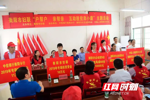 现场,耒阳市妇联、中信银行衡阳分行共同捐赠了专项扶贫资金21万元,市女企业家协会、中国人寿衡阳分公司联合为全村702名18至60岁的女性捐赠总价值7万余元的“湘女关爱保”1404份,市女企业家协会还为全村48户贫困户捐赠了48台电风扇价值达1万元。