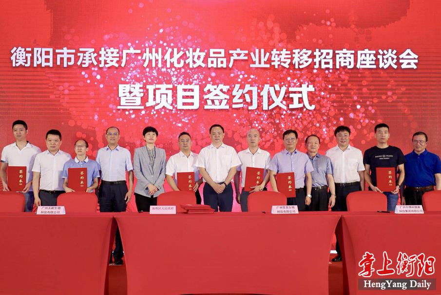 签约仪式上,珠晖区政府与广州市部分化妆品企业签订了投资意向协议、与广州市化妆品行业协会签订战略合作协议;衡阳市林业局与华南理工大学协同研究院签订中国油茶化妆品研究院全面合作协议。