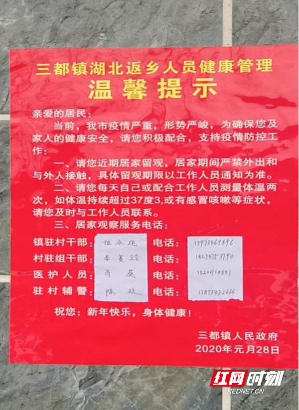 三都镇湖北返乡人员健康管理温馨提示。