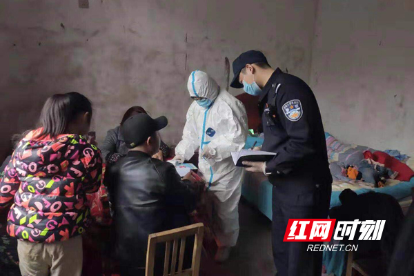 2月3日上午,衡阳市南岳公安分局民警陈佳冰坚守在岗位上,前往寿岳乡龙凤村入户进行疫情防控数据核查。
