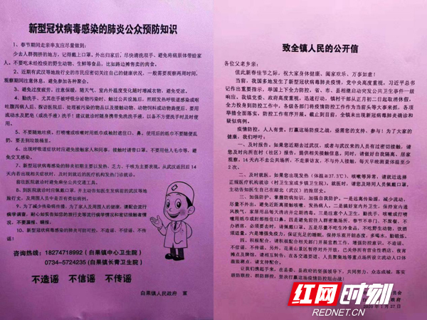 1月26日,白果镇全体干部职工取消休假,返岗上班,参加疫情防控工作会。会后,各村蹲点干部迅速下村督促指导村(社区)开展地毯式排查,摸排湖北返乡人员共164人;各村(社区)在主干道设置防控岗,对返乡人员一律登记监测;农贸市场、农村集市取消赶集;宾馆、酒店限制经营;流动摊贩、夜市行业严控经营;娱乐场所、麻将牌馆一律关闭。