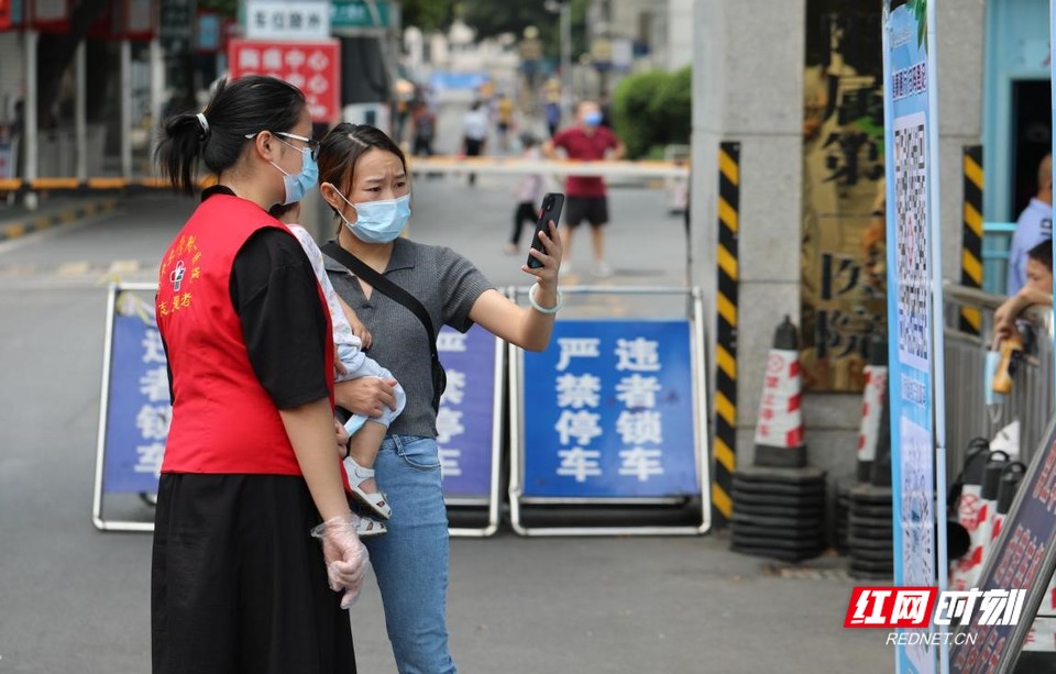 医院志愿者在院内轮流巡岗,在北大门站岗执勤,协助安保人员做好体温检测,健康码、行程码核查等工作。