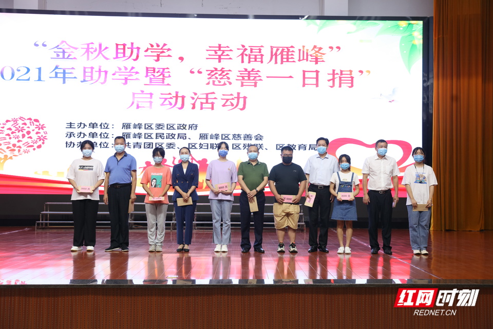 8月26日上午,衡阳市雁峰区举行“金秋助学•幸福雁峰”2021年助学暨“慈善一日捐”启动仪式。