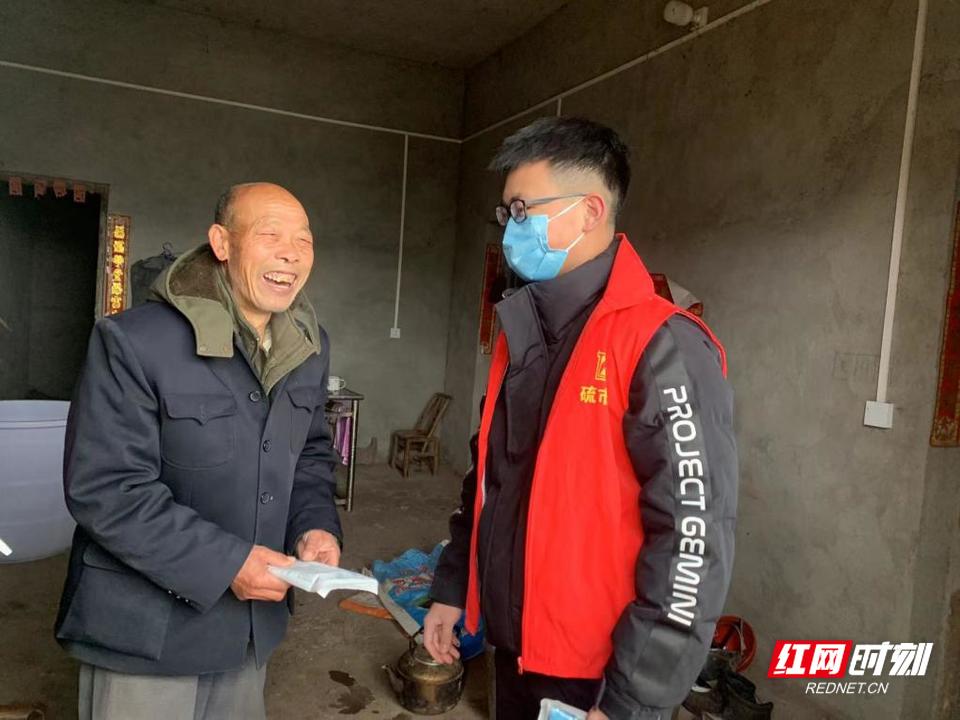 据了解,近日来,硫市镇“衡阳群众”青年志愿者已经下村走访了近30户有外出需求的孤寡老人,共送去口罩300余只。青年志愿者们会继续行动,帮助村民提升防控意识,增强科学防控能力,为打赢这场疫情阻击战贡献出青春的力量。