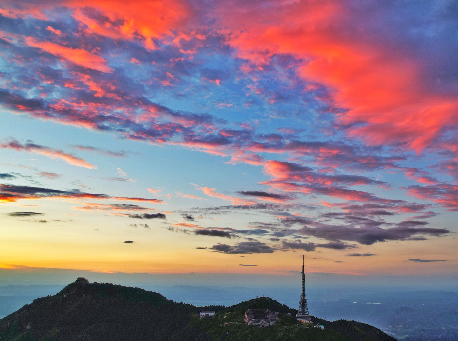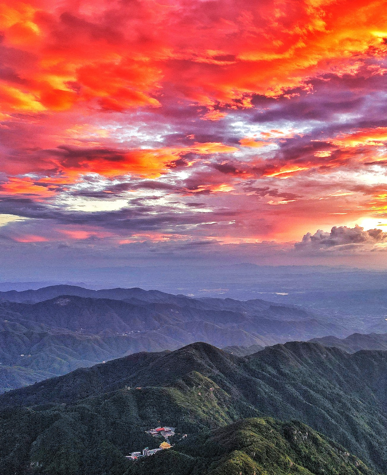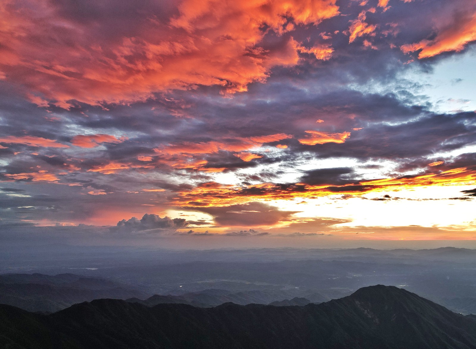 红网时刻衡阳8月4日讯(摄影 喜砣 记者 石珊)8月24日是中国传统节日七夕佳节,今天傍晚,湖南南岳天空出现“火烧云”景观,西落的太阳像巨大的火球,逐渐将天空织成美丽的锦缎。火烧云霞铺泻天际,染红祝融峰顶,神奇而美丽的“火烧云”给你独一份浪漫。刷屏的火烧云景象也被不少人认为是好兆头!