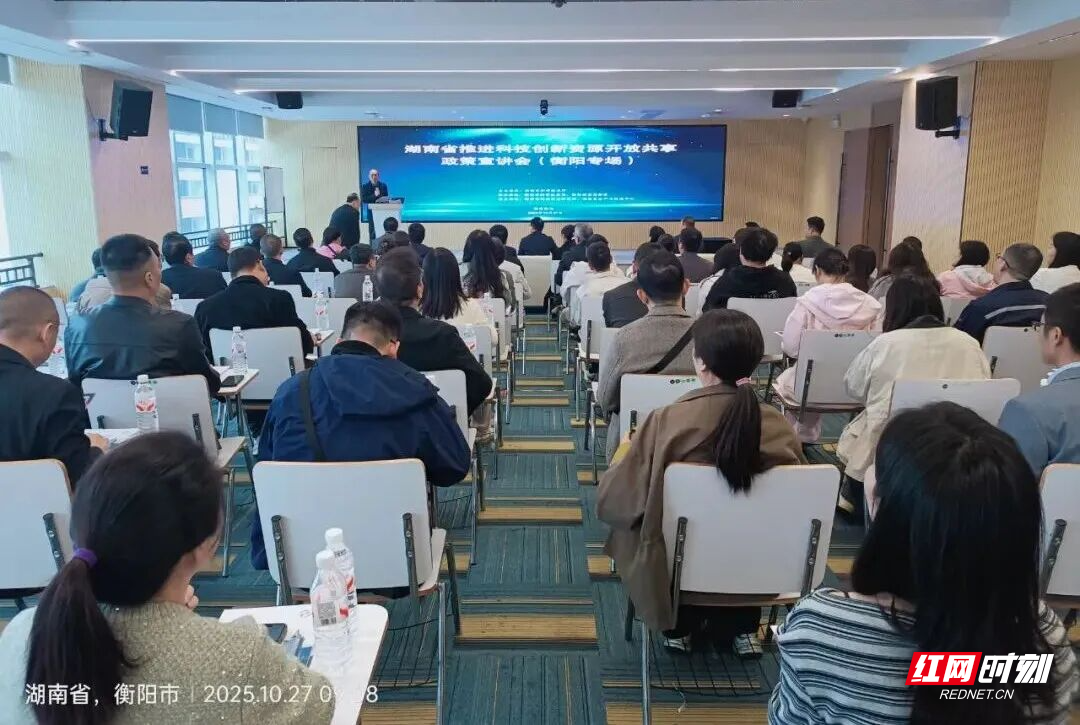 2025年10月27日,湖南省推进科技创新资源开放共享政策宣讲会(衡阳专场)在衡阳高新区举行。(资料图)