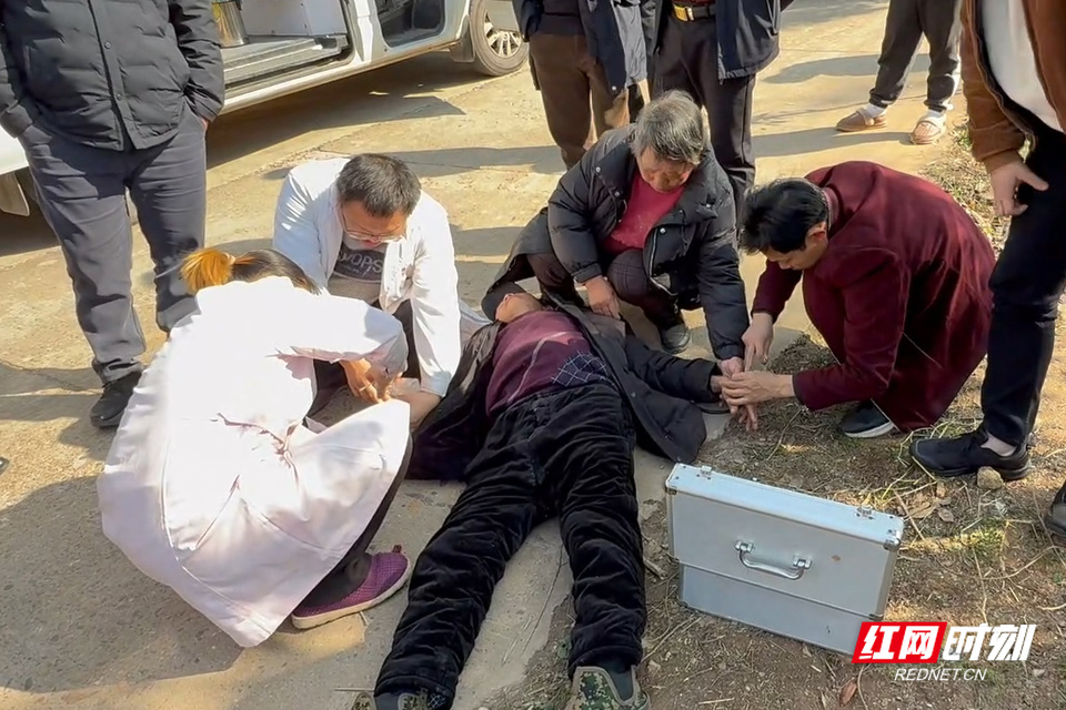 “当时我们发现老人时,他已经躺倒在地上,面部发红。我们初步判断,老人有可能是血压偏高引发脑溢血,也有可能是心脏等基础疾病导致的突发状况。情况紧急,我们第一时间就拨打了120急救电话。”衡山县东湖镇人民政府农业综合服务中心主任颜映宇告诉记者。