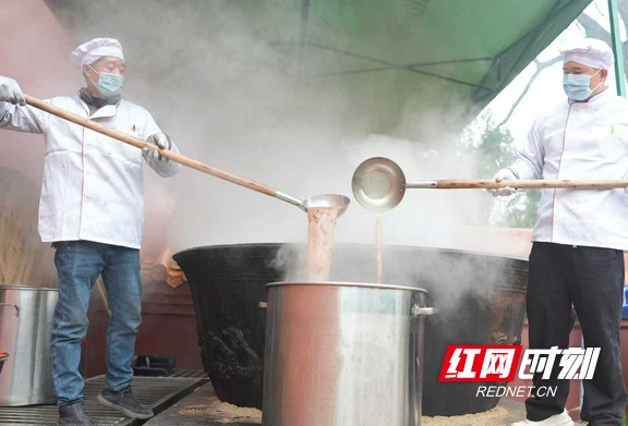 腊八粥历经10小时柴火慢熬,谷物清香扑鼻而来。曹正平 摄