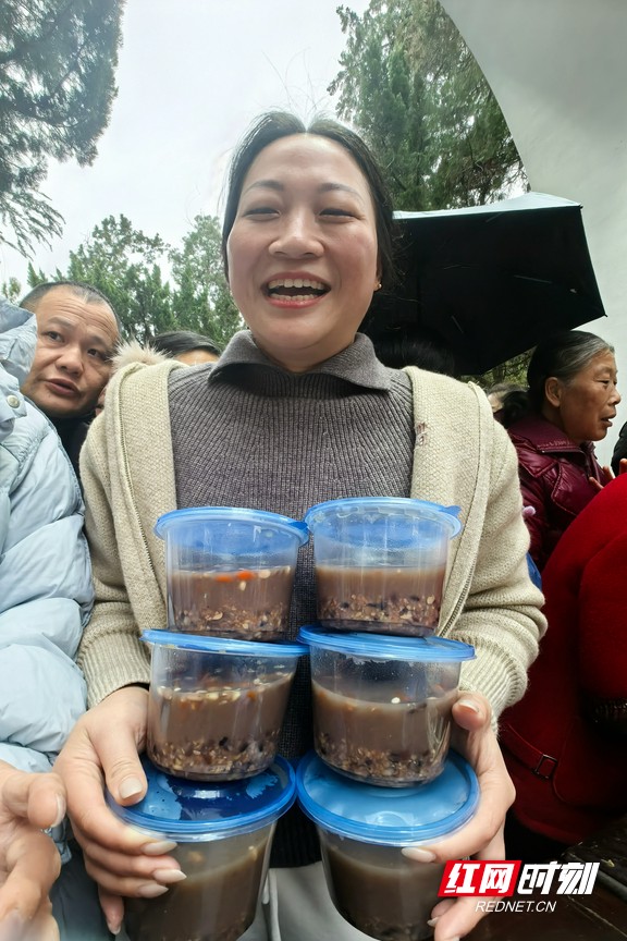 许多市民游客特意前来领取这份寓意吉祥、承载祝福的“福寿粥”,感受传统节日的温暖。文兰 摄