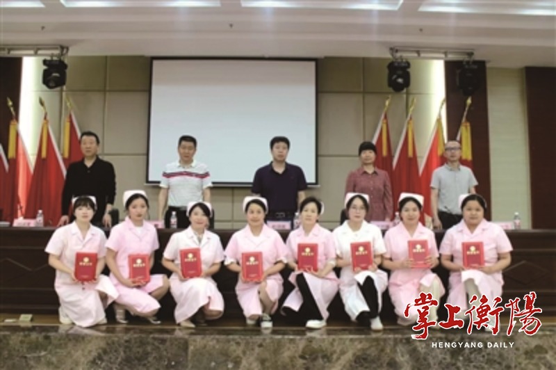 ▲护士节表彰大会上,为“优秀护士”颁奖。