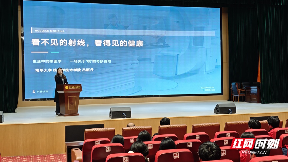 签约仪式圆满落幕之后,“馆校合作”科普系列活动随即拉开帷幕,一场精彩纷呈的科普讲座率先与博文高中的同学们见面。南华大学核科学技术学院实验师、博士吕丽丹以“看不见的射线,看得见的健康”为主题,用通俗易懂的语言、生动鲜活的案例,向同学们讲解了核射线的基本原理、应用领域以及在医疗健康、环境保护等方面的重要作用,打破了同学们对核射线的陌生与误解,激发了大家对核科学领域的探索兴趣。讲座现场互动频繁、气氛热烈,同学们积极举手提问,吕丽丹博士耐心细致地逐一解答,同学们在轻松愉悦的氛围中收获了科学知识,拓宽了科技视野。