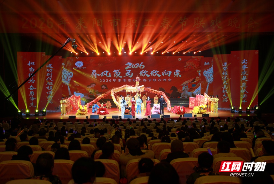 红网时刻新闻2月11日讯(通讯员 卢健)2月10日晚上,“春风策马•欣欣向荣”2026年耒阳市职工春节联欢晚会在该市文体会议中心精彩上演。两千多名职工齐聚一堂、共迎佳节、共享团圆。
