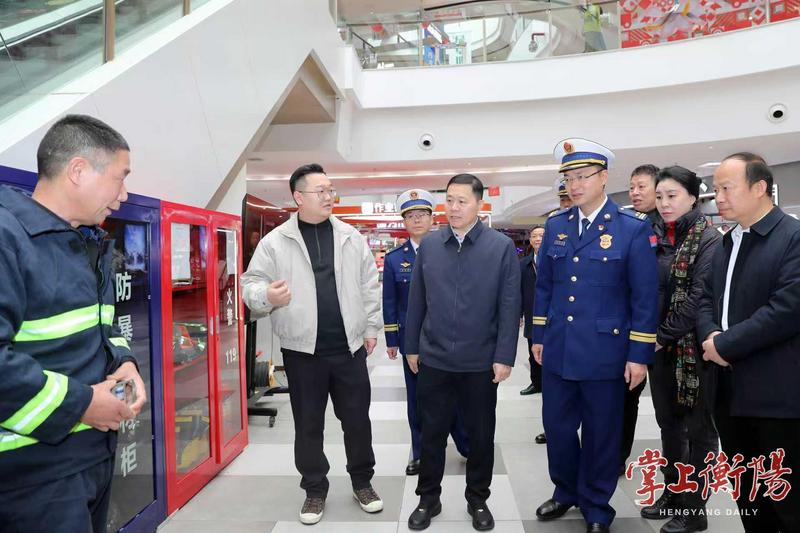 在衡阳县新时代广场,刘中杰仔细检查消防设施配备情况,了解日常火灾防控、风险研判、应急演练等工作。他强调,要以“时时放心不下”的责任感,紧盯重点领域,全覆盖排查风险隐患。要压实安全责任,强化应急值守与协调联动,切实把各项安全防范措施落到实处,为全市人民欢度春节筑牢坚实安全屏障。