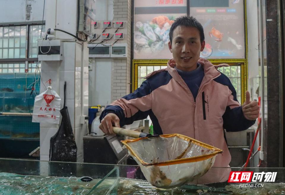 在祥光农贸市场经营多年海鲜店的夏老板,这几天忙得脚不沾地。“老顾客都知道我这里东西新鲜,”他一边利索地捞起一网活蹦乱跳的基围虾,一边笑道,“像这种基围虾,每天很早就卖光了。”