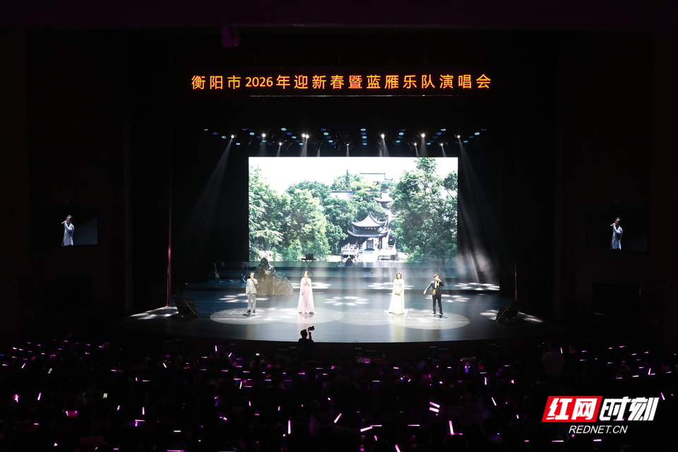 红网时刻新闻2月5日讯(记者 王敏 通讯员 罗亮华 唐敏)2月4日晚7点30分,衡阳市保利大剧院灯光璀璨,“石鼓听新韵 平安共此时”衡阳市2026年迎新春暨蓝雁乐队演唱会举行。这场兼具文化韵味与平安理念的视听盛宴,由市文旅广体局、市消防救援局、石鼓区委、石鼓区政府主办,石鼓区文旅体局、消防救援局承办,为市民送上真挚的马年新春祝福。