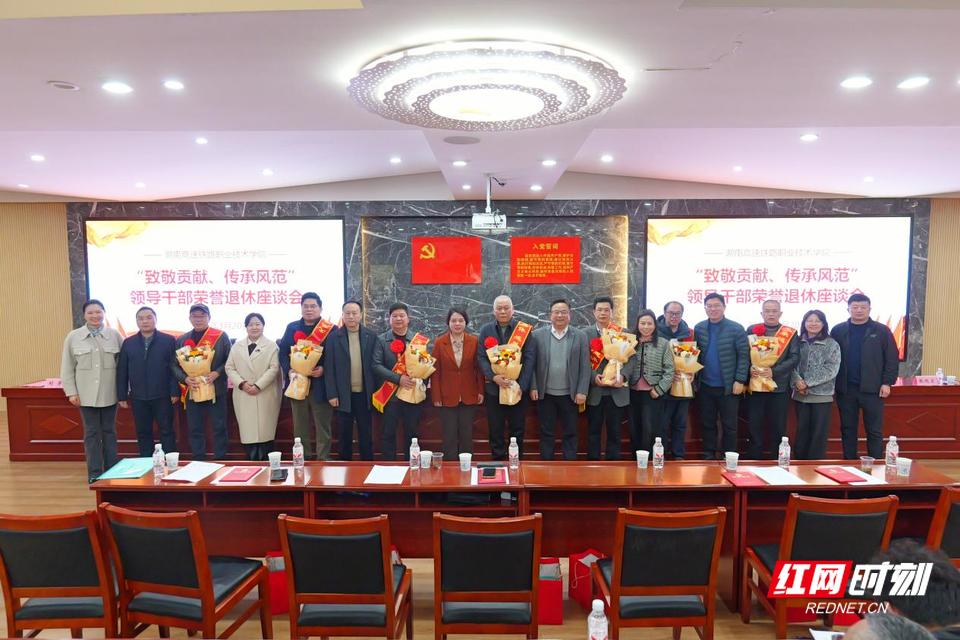 红网时刻新闻3月25日讯(朱璐 仝泽鑫 刘俞辰)近日,湖南高速铁路职业技术学院活动中心二楼党校内,一场以“致敬贡献、传承风范”为主题的座谈会在此举行。学院党委书记阳丽红出席并讲话,院长姚方元主持。全体院领导、各部门及教学教辅机构主要负责人、正科及以上新退休人员齐聚一堂,共忆奋斗岁月、共话学院发展、共送美好祝福。