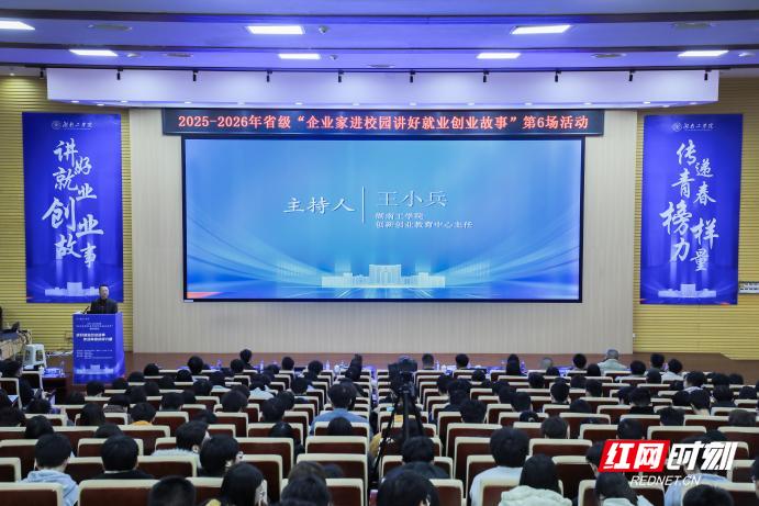 红网时刻新闻3月25日讯(通讯员 陈晓波 胡晓菡)3月24日下午,湖南省2025—2026年第6场“企业家进校园讲好就业创业故事”活动在湖南工学院明翰报告厅举行。本次活动由省教育厅主办,湖南工学院承办,省大中专学校学生信息咨询与就业指导中心全程直播。湖南工学院党委委员、副校长罗建新出席并致辞。