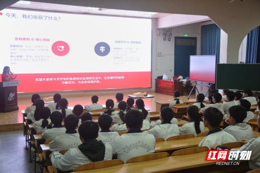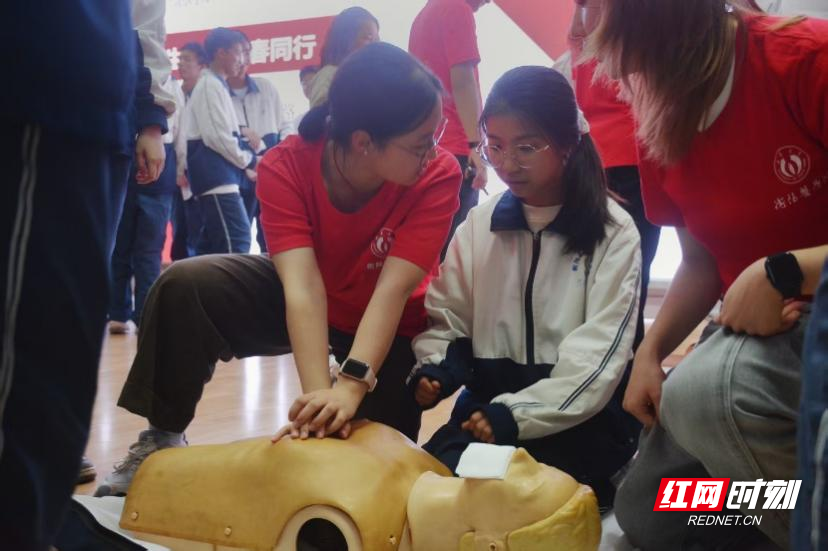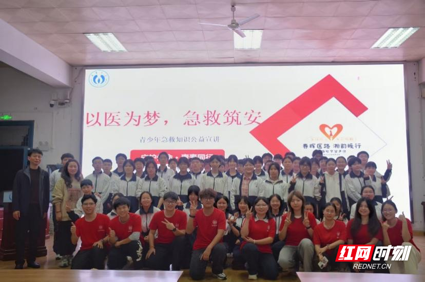 红网时刻新闻4月17日讯(通讯员 孙思航 刘漩)4月16日,南华大学基础医学院“春晖医路,湘韵暖行”服务队的医学生志愿者们,为衡阳市八中教育集团成章实验中学的初三学生们带来了一场理论与实践深度融合的生命安全教育课。活动通过真实案例剖析与心肺复苏实操演练,为中学生填补了校园急救知识的空白,更让“黄金4分钟”的急救理念深入人心。