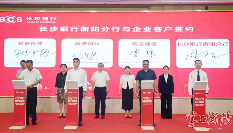 活动中,长沙银行衡阳分行与高诺(衡阳)铜业有限责任公司、衡阳泰豪通信车辆有限公司、衡阳爱洁科技股份有限公司等企业客户签约。