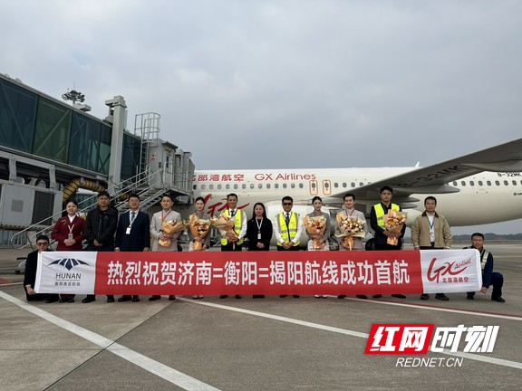 广西北部湾航空执飞的“济南=衡阳=揭阳”航线成功首航。
