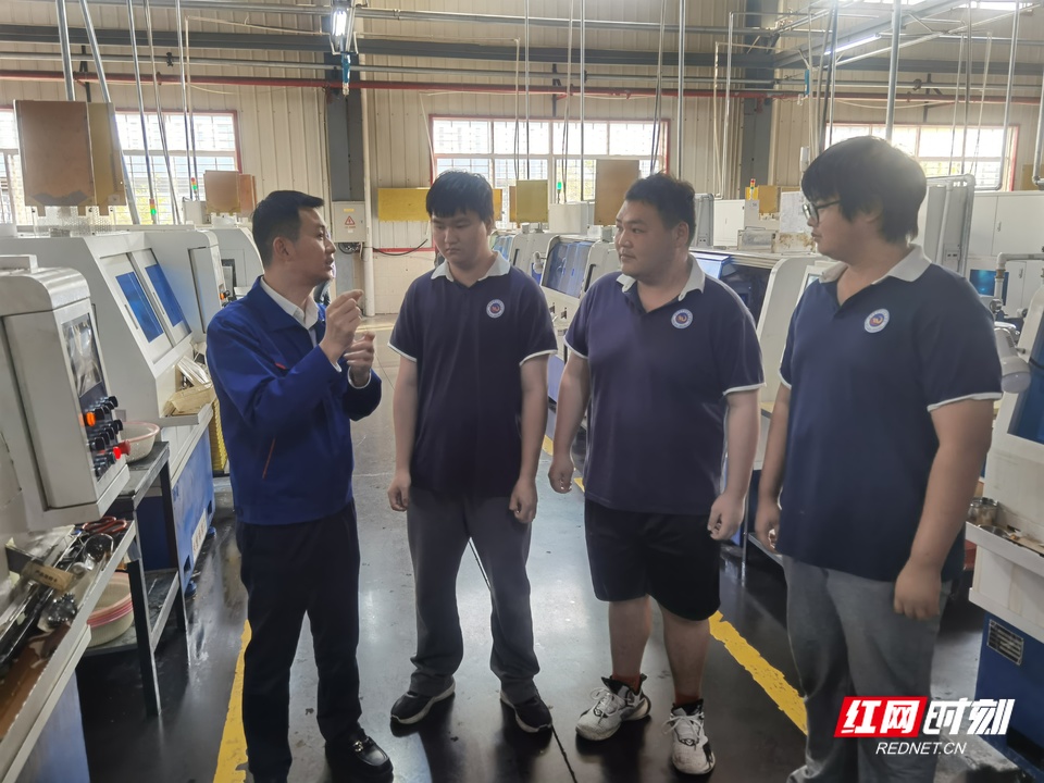 与青华职校产教融合,赵青华为实训学生现场指导授课。