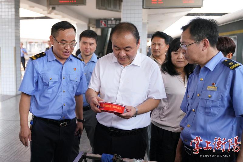 在衡阳火车站,朱健详细了解旅客秩序维护、食品售卖工作等情况。他强调,要强化服务意识,压实管理责任,持续完善火车站基础配套设施和功能分区,争取铁路主管部门对衡阳铁路站改造升级方案的支持,做好车站环境卫生、品质提升等工作,为旅客提供安全舒适的出行环境。