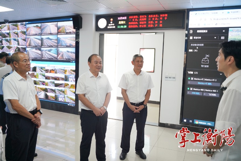 在高速交管三支队指挥中心,朱健通过实时监控大屏,了解全市高速公路实时运行情况,对国庆返程衡阳高速路况视频直播这一创新举措给予充分肯定。他强调,假期临近尾声,交通安全压力增大,要抓好交通保畅工作,强化监测分析、疏堵保畅和出行引导,聚焦重点道路、重点车辆和重点时段,坚持“人防+技防”相结合,细化保通保畅措施,强化交通应急处置,全力以赴保障群众出行安全畅通。