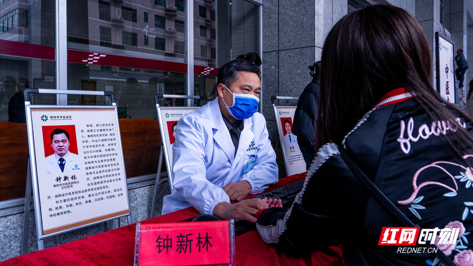 专家通过望闻问切为市民诊断。