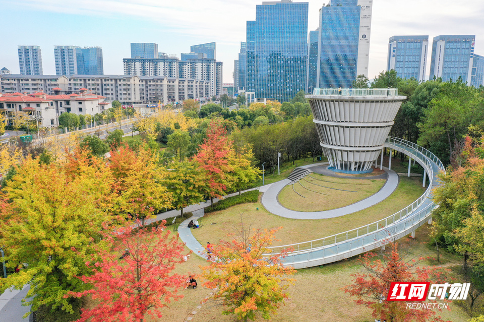 近日,衡阳市陆家新屋中心公园迎来了“枫”情正浓的时节。