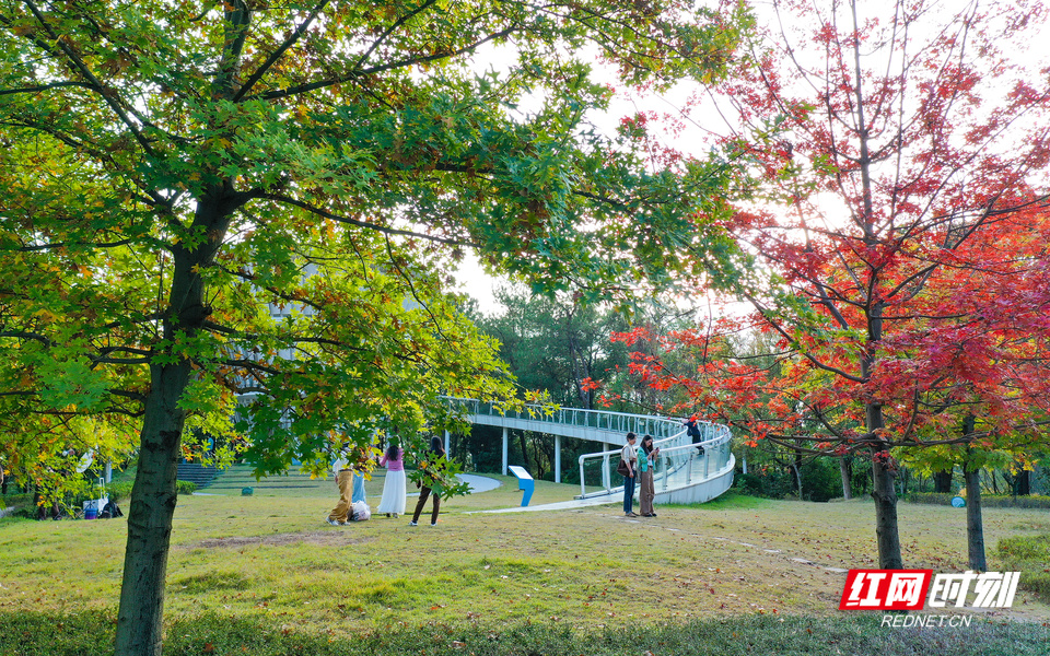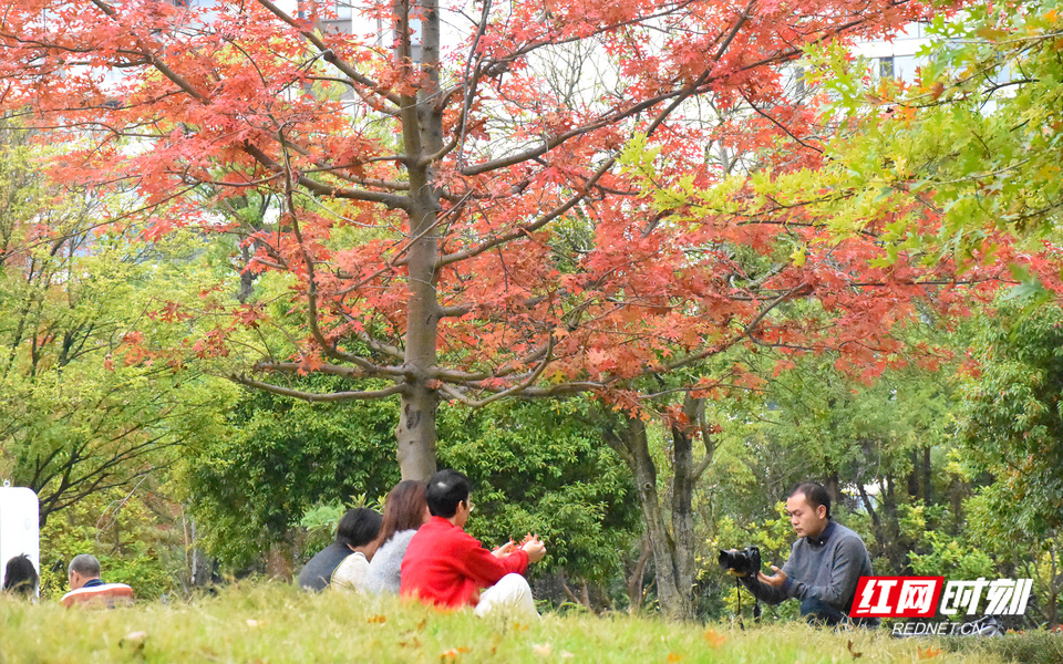 红网时刻新闻11月7日讯(记者 宋美君 李璐 实习生 翁汤雪)近日,衡阳市陆家新屋中心公园迎来了“枫”情正浓的时节。枫树褪去翠绿,换上深红、橙黄的盛装,成为雁城最亮眼的景致,吸引不少市民前来赏景打卡。