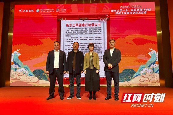 当天下午的“健康湘菜·食在衡东”主题分享会进一步聚焦产业发展与健康创新,多位专家学者共同探讨衡东土菜的未来发展。值得关注的是,会上,大湘菜报、长沙商贸旅游职业技术学院湘菜研究院、衡东县土菜发展服务中心、衡东县土菜行业协会等单位联合发布了《衡东土菜健康行动倡议书》,从标准建立、营养引导、可持续发展等方面推动土菜产业升级。活动还对核心食材“三樟黄贡椒”和经典菜品“黄贡椒脆肚”进行了推介,并现场为“衡东土菜推广大使”颁发聘书。